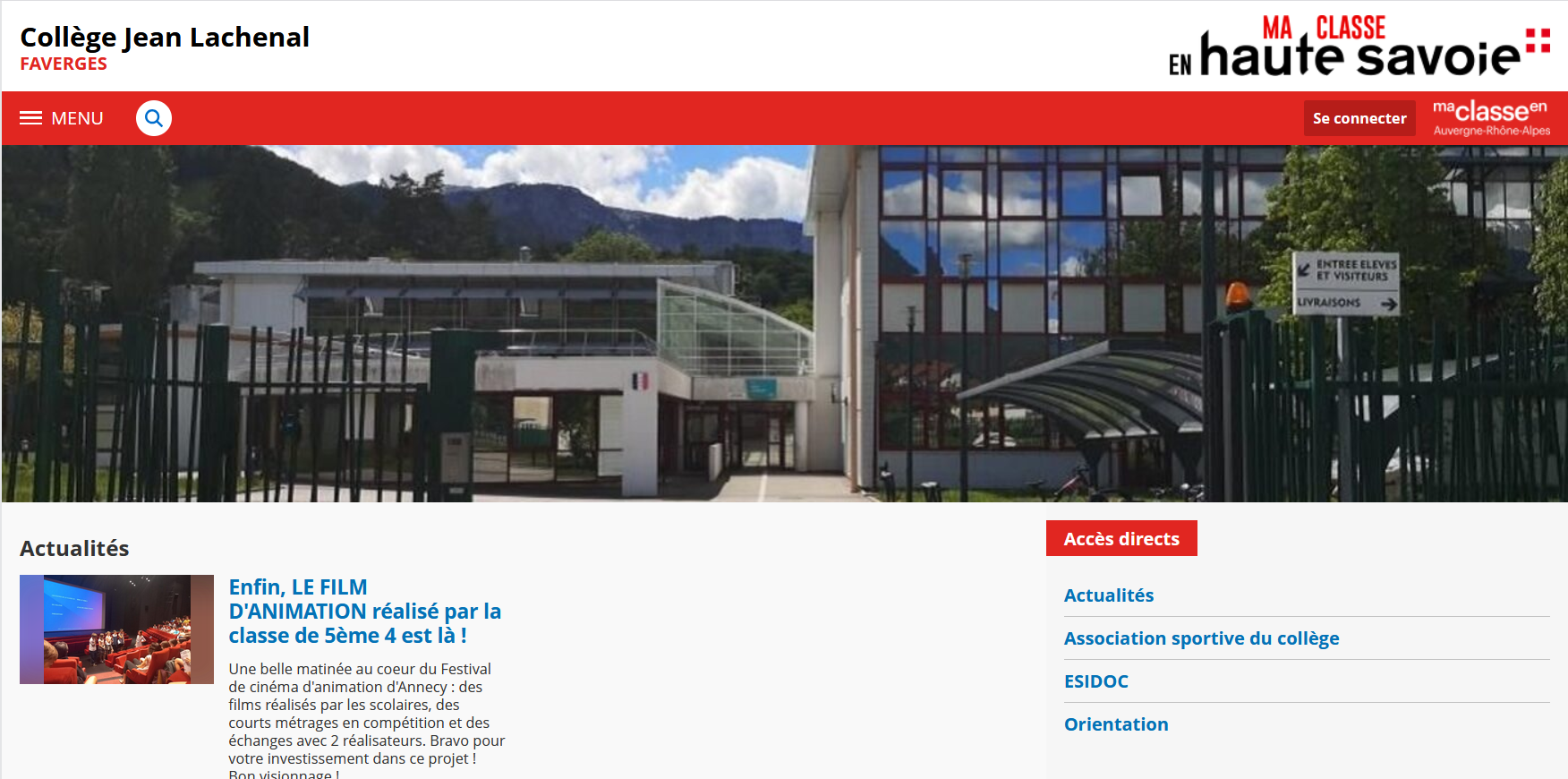 Pour se connecter à l’ENT, cliquez sur Se connecter en haut à droite.